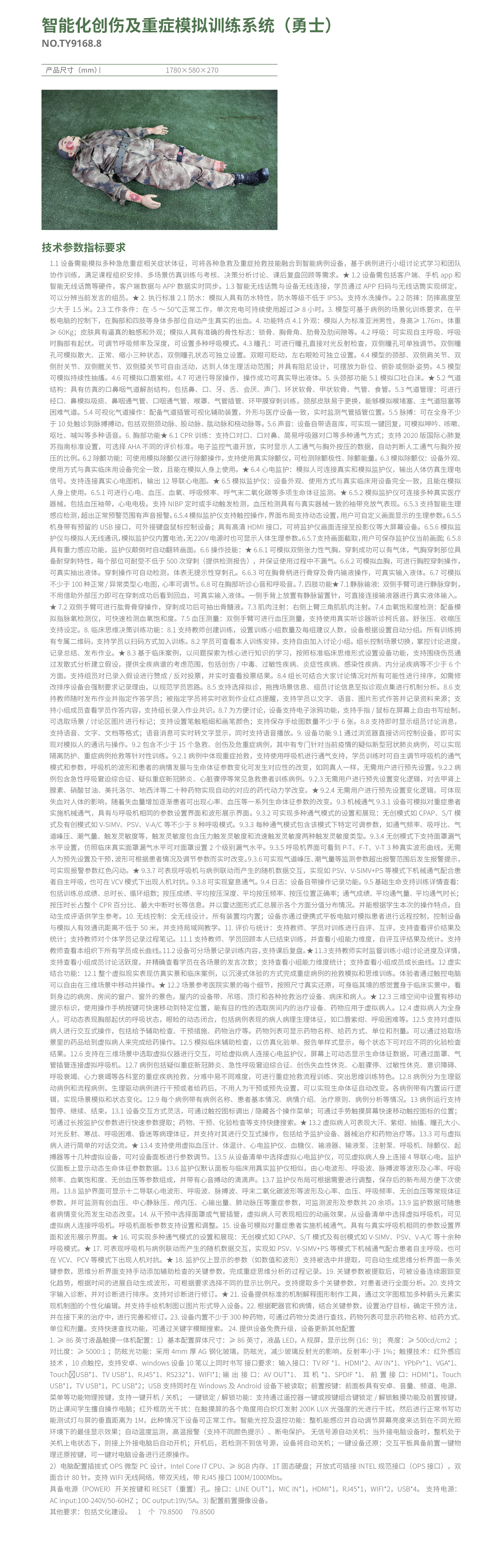 智能化创伤及重症模拟训练系统(勇士)